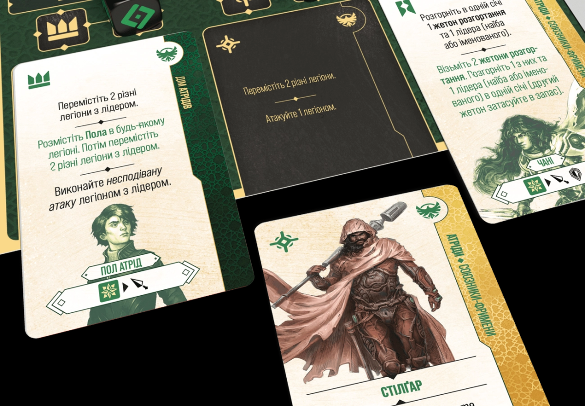 Во время этих фаз игроки будут подбирать и разыгрывать карты планирования, бросать кубики действий и разыгрывать соответствующие эффекты этих действий, перемещая войска, начиная бои и тому подобное. Некоторые действия и даже фазы одинаковы для обеих сторон противостояния, другие - доступны только той или иной фракции. Например, "песчаная погоня" позволяет игроку за Атридов переместить свой легион через цепь смежных зон, в которых находятся знаки червей или сами песчаные черви. Конечно же, Харконнены имеют с песчаными червями совсем другие отношения. Впрочем, орнитоптеры Харконненов тоже добавляют их легионам некоторой мобильности и позволяют перевозить войска даже мимо препятствий.Фракция Харконненов оккупирует основные населенные зоны Арракиса в начале партии, имеет возможность использовать транспорт и заниматься добычей пряностей. Количество собранных пряностей влияет на отношения с Гильдией Лоцманов, Ландсраадом и ДАПТом, и может стать как источником роста власти, так и наказать болезненными штрафами. Пряности должны течь! Впрочем, имея под боком воинственного врага, никогда нельзя быть уверенным, что гарвестер не станет жертвой диверсии. Используя тайную поддержку Дома Коррино, Харконенны пытаются обессилить Атридов, ища тза уничтожая сечи фрименов.