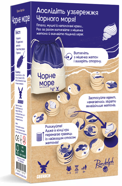 Черное море (Seaside) — это быстрая дорожная игра для 1-5 игроков, в которой игроки топят в море ракушки, крабов и изоподов, чтобы потом выловить их к своему побережью.