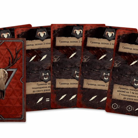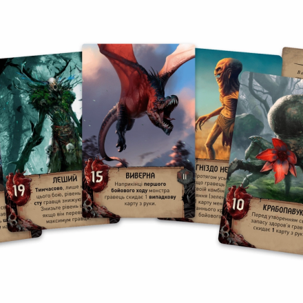 В поединке с монстром формируется боевая колода монстра – количество карт равно значению здоровья монстра. Когда монстр получает повреждения, из этой колоды сбрасываются карты. В ход монстра открывают верхнюю карту его колоды. Монстр бьет либо кусает. Игрок получает повреждения и сбрасывает карты. Победив монстра, игрок получает его карту как трофей, берет 2 монеты и продвигается по треку трофеев, после чего истощается.