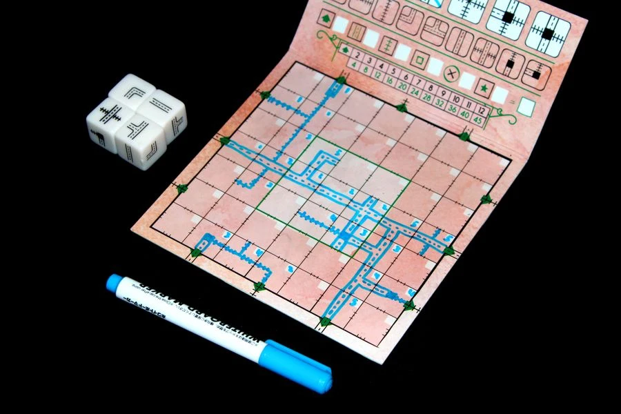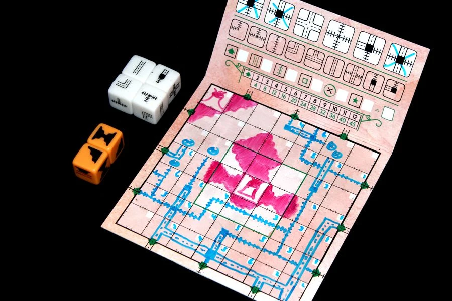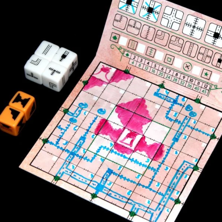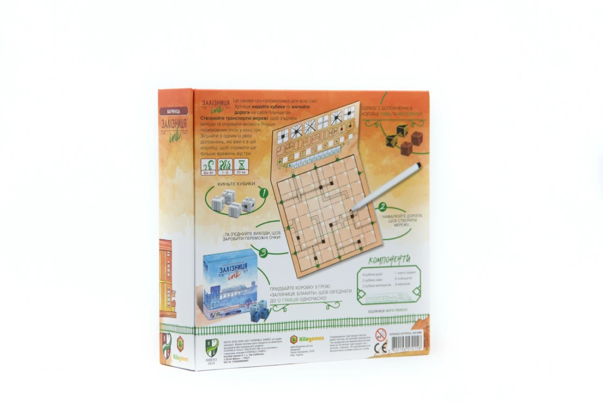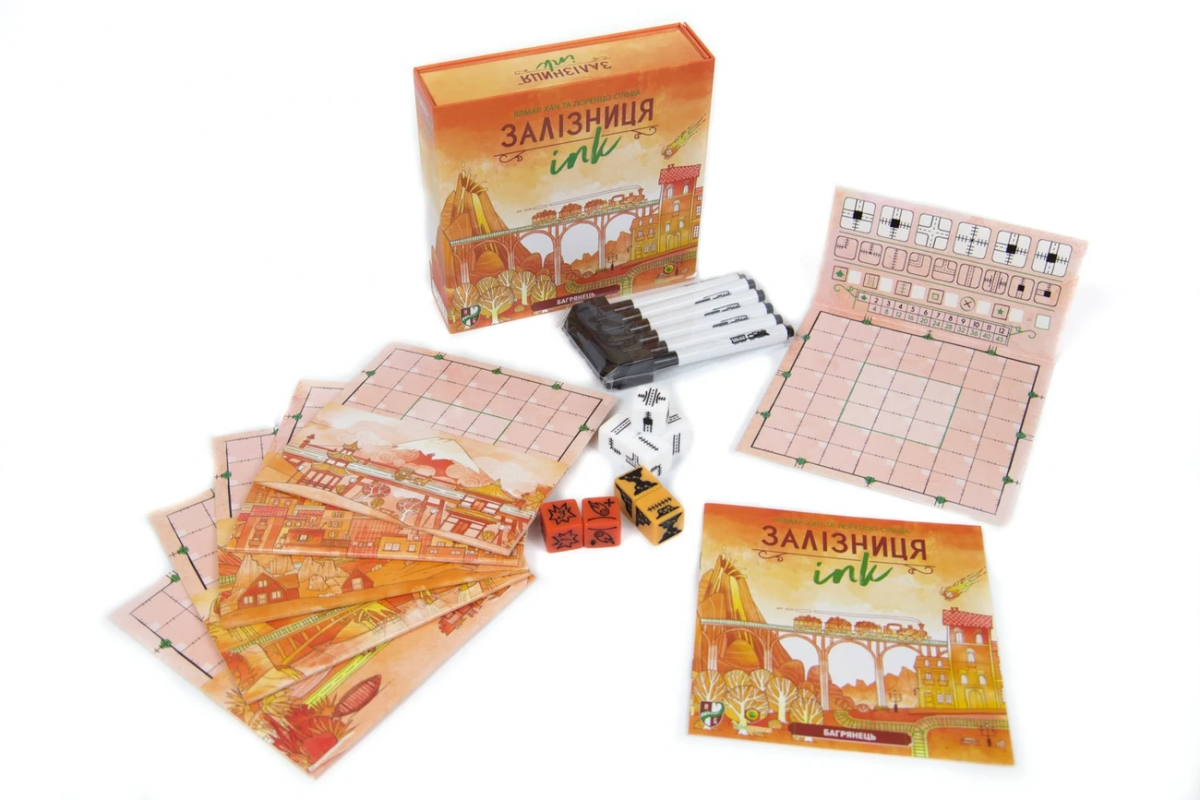 Быстрая игра на кубиках с механикой «кинь и запиши» («roll & write»). Настольная игра «Railroad Ink» была разработана в 2018 году Ялмаром Хашем (автором таких игр, как «Крепость Маджонг» и «Фотосинтез») и Лоренцо Сильвой (опять-таки - «Крепость Маджонг»; еще читатели Гикача могут знать его по играм «Лаборатория» и «Паропарк»).