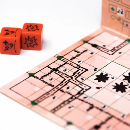 Партия длится 6 раундов. На одном кубике метеорита указывается направление, а на другом – расстояние. Игроки отсчитывают квадраты от предыдущего места падения. В месте падения метеорита игрок стирает с клетки всё, что на ней было нарисовано, и изображает кратер.