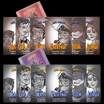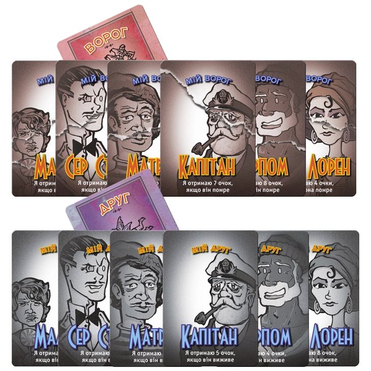 В начале игры участники получают карты персонажей, тайных друзей и врагов: от персонажа-врага вы должны избавиться, а персонажа-друга спасти и доставить до берега.