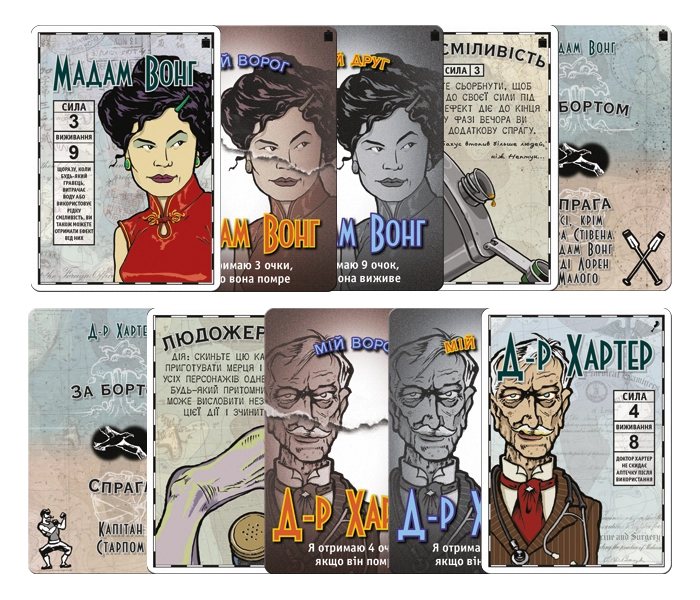 Среди предметов вам будут попадаться аптечки, которые помогут вылечить раны, утоляющая жажду вода, особые предметы, которые понадобятся во второй фазе, и драгоценности, которые понадобятся в конце игры или при попытке договориться с другим героем. - День. Действия. В течение этой фазы персонажи поочередно, начиная с игрока, который находится ближе к носу лодки, выполняют одно из действий по выбору.