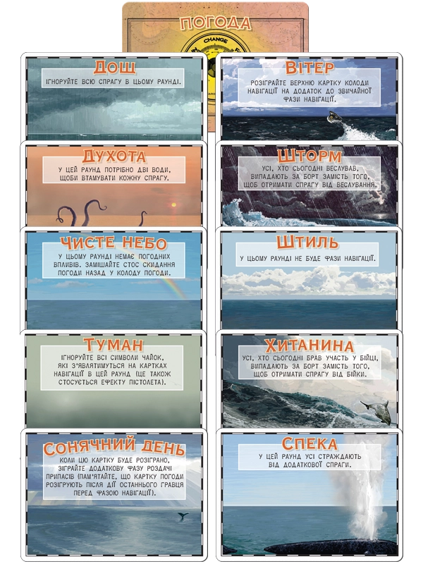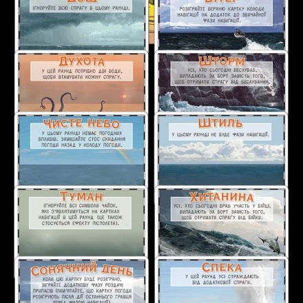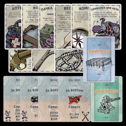 Если колода иссякнет, прежде чем до вас дойдет очередь получить припасы, вы не получаете ничего: нужно было раньше поменяться местами с другим персонажем и сесть поближе к корме!