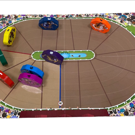 - Разместите фигурки коней от первой до восьмой на разделе "старт" трека гонки.