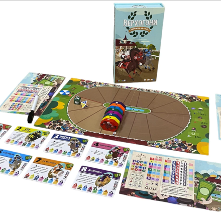 «Long Shot» – это игра об обогащении на конной гонке с популярной механикой roll&write. Как в старых книгах: "он из всей газеты только и читал, что страницу с новостями из ипподрома", то и в «Верхогонах» игроки будут делать ставки, покупать коней и готовить жокеев. По мнению Гикача, тем чем дальше, тем тематичнее становятся игры "брось и зарисуй" и "переверни и зарисуй". Сам он уже немало партий сыграл в игру «Чемпіонський пінбол» о ретро-автоматах, а до этого еще были «Стежки Тукани» о создании туристических путей, и многие другие.