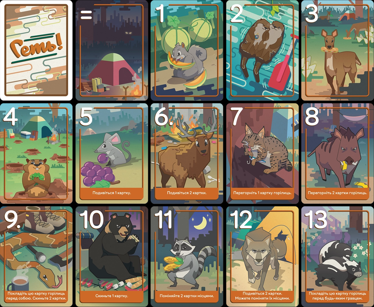 Карты номиналом 5-13 обладают особыми эффектами, позволяющими тайком подсматривать лежащие лицом вниз карты, переворачивать карты, сбрасывать карты из лагеря или менять их местами.
