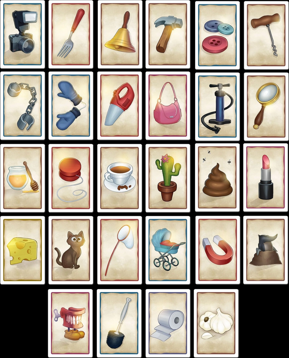- Остальные игроки смотрят выбранные предметы, обсуждают и пытаются найти те 2, которые выбрал их товарищ как подходящее орудие. Игрок, который загадал предметы, не участвует в обсуждении.