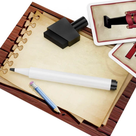 - Его сосед выбирает ровно 2 из своих карт, которые, по его мнению, помогут выполнить это задание. Записывает их в свой секретный планшет. А также выбирает 3 карты, которые точно не подойдут.