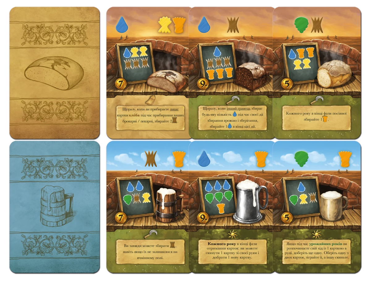 Игра «Пиво и хлеб» продлится шесть раундов, которые через один будут воплощать урожайные и засушливые годы. На самом деле, Гикач делил бы их парами, потому что обновление карт и сброс рецептов происходит после засушливого года, второго в паре. Да и тактически они взаимосвязаны.