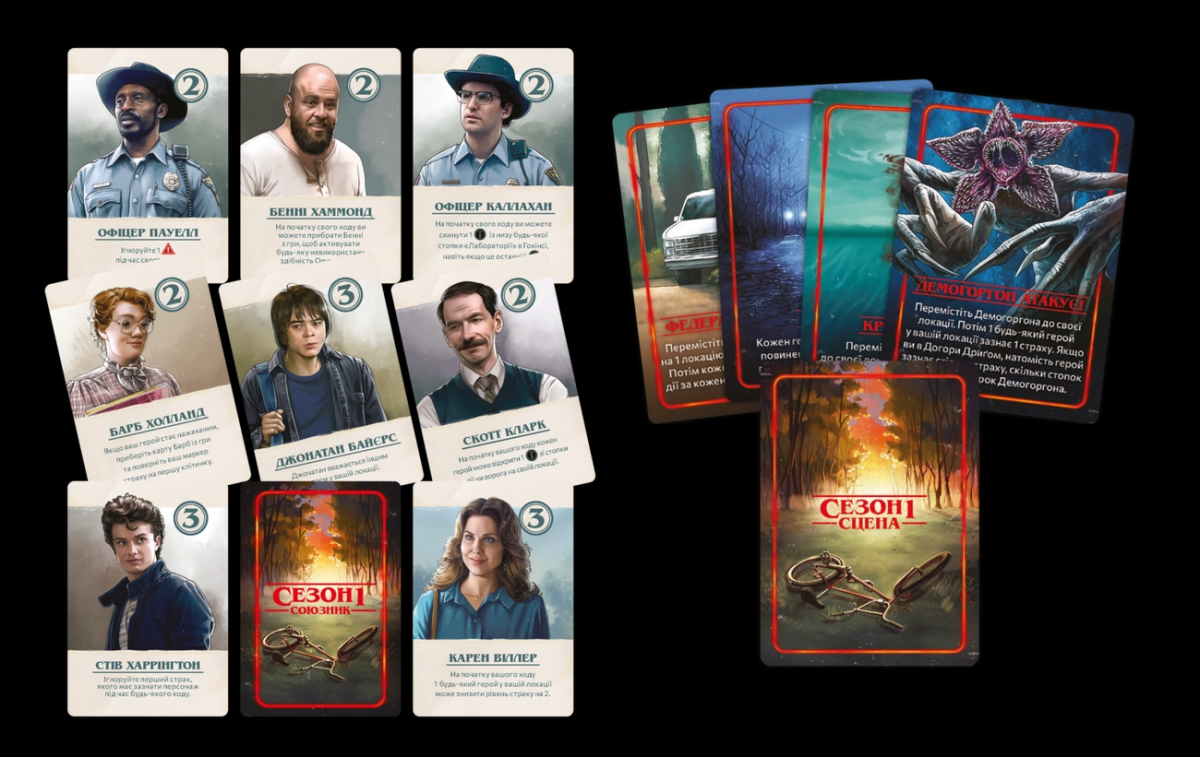На двустороннем игровом поле изображено два сезона. Общая цель первого сезона – спасти пропавшего мальчика Вилла Байерса, очистив все специальные ячейки от жетонов. Общая цель второго сезона – спасти Вилла и закрыть ворота. Демогоргон или демопсы (в зависимости от выбранного режима игры) будут препятствовать игрокам в выполнении действий и нагонять страх. Если хотя бы один из героев становится полностью испуганным, игра завершается поражением сразу же.
