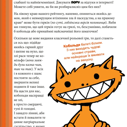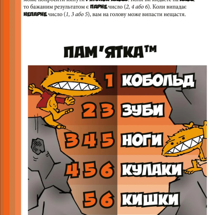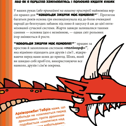 Перед вами украинская локализация уже классической настольной ролевой игры в пародийном стиле от иллюстратора Стива Джексона, известного Гикачу по серии игр «Манчкин». За многие годы своего существования «Kobolds ate my baby» была оптимизирована до современной системы «полиморф».