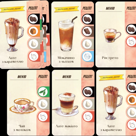 Невероятные компоненты этой настолки заставляют Гикача пробудить в себе кофемана. Шоколад, карамель, кофейные зерна, молоко, кубики льда и другие ингредиенты найдут свое место в миниатюрных чашечках для напитков.