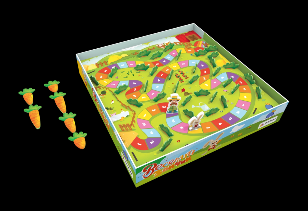 - Далее игрок смотрит на число, указанное на клетке, на которой он остановился, и вытаскивает столько же морковок из грядок.