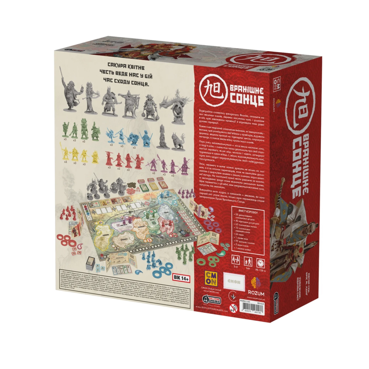 «Восходящее солнце» - это настоящий подарок настольным гурманам. Великолепные компоненты, стильный арт и множество прекрасных больших и маленьких высоко детализированных миниатюр. Игра гарантированно порадует всех любителей тонких военных стратегий, пронизанных интригами и дипломатией, и подарит массу незабываемых эмоций всем участникам. Вариативность и реиграбельность обеспечиваются тремя наборами карт времен года, а также ассиметричными сторонами, которые подразумевают уникальные стили игры и по-разному взаимодействуют с противниками и союзниками.