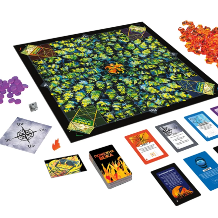 - Распространение пожара. Разместите жетон огня на свободной клетке поля по направлению ветра от Вечного огня в центре поля, или от любого другого имеющегося жетона огня.