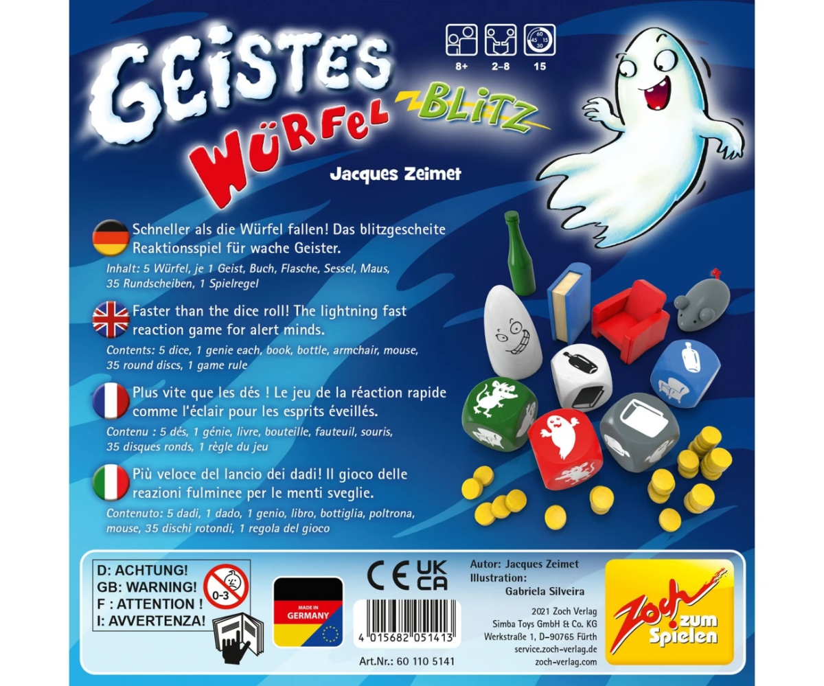 Настольная игра “Geistesblitz 2.0” является продолжением одной из лучших семейных игр “Geistesblitz”. При этом она является самостоятельной, т.е. не требует наличия базовой игры. Так же как и в случае с героем оригинала, незадачливым озорным духом по имени Болдуин, игроки будут помогать жителям старого замка выбраться из очередной переделки. Но на этот раз в затруднительной ситуации оказалась подружка призрака. Для того, чтобы помочь ей найти потерявшиеся в ванной комнате предметы, игроки будут пытаться определить зашифрованные на карте объекты и пытаться схватить их раньше остальных участников. Тот, кому удастся безошибочно определить большинство предметов, станет победителем.