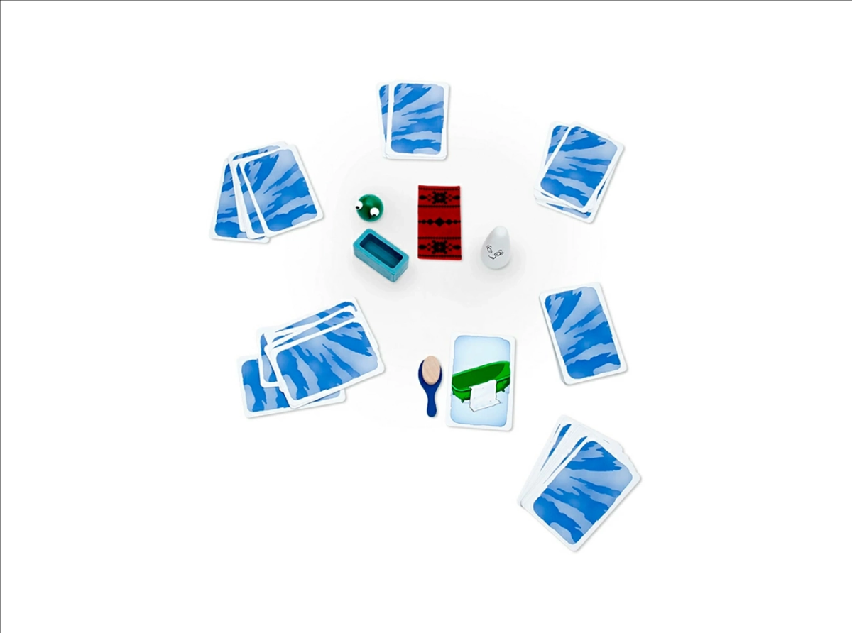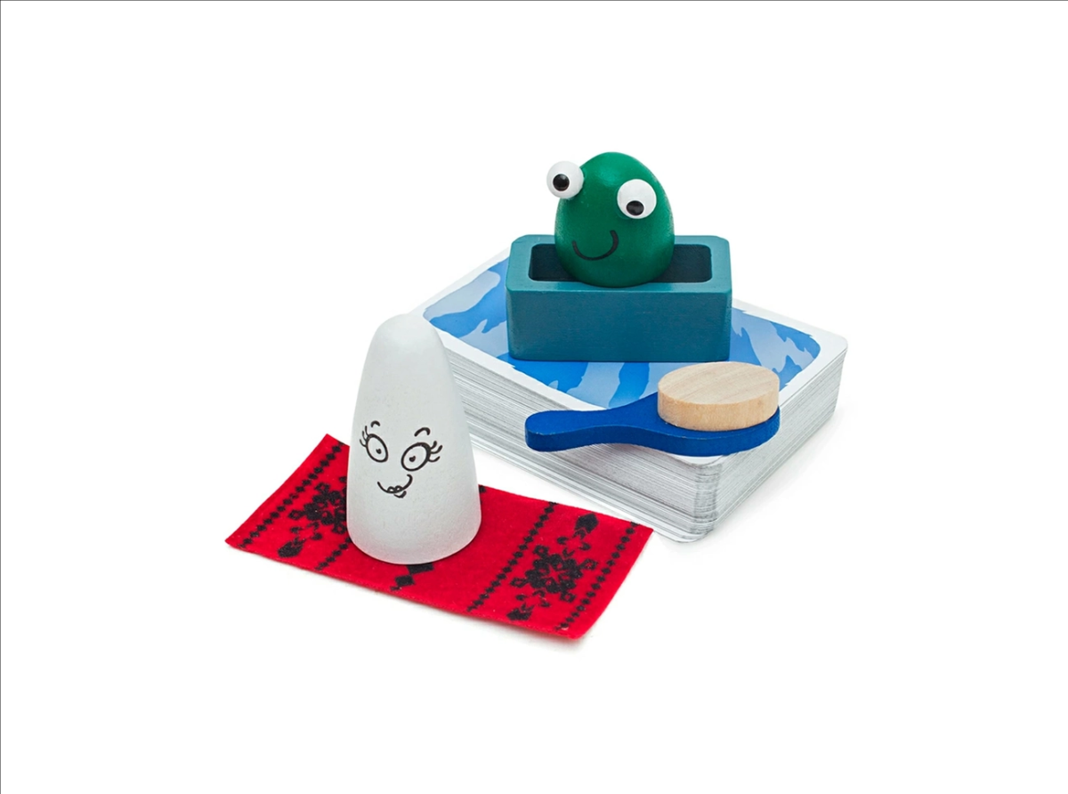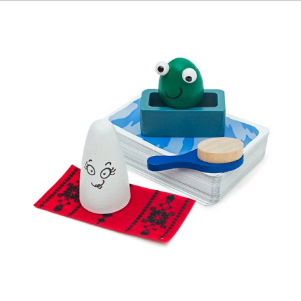 - Игра с полотенцем. Если на карте показано полотенце, вместо поиска предмета по привычным правилам участники должны найти предмет, цвет которого совпадает с цветом полотенца на карте. Если на карте еще есть лягушка, игрок должен не только схватить предмет, но и воскликнуть его название.
