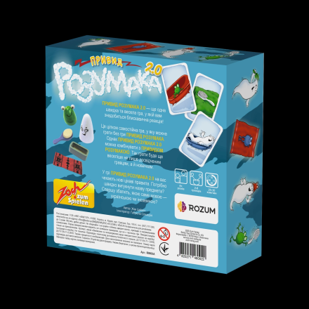 «Привид Розумака 2.0» - быстрая детская игра, развивающая реакцию и внимательность. Настольная игра «Привид Розумака 2.0» («GeistesBlitz 2», «Барамелька» или «Ghost Blitz 2») вышла в 2012 году. В 2012-13 годах она становилась номинантом конкурса «Golden Geek» (в категориях «Лучшая детская игра» и «Лучшая пати-игра») и победителем конкурсов «Kinderspielexperten» («Лучшая игра для 8-13 лет») и «Ludoteca Ideale» в категориях «Лучшая игра года» и «Лучшая детская игра».