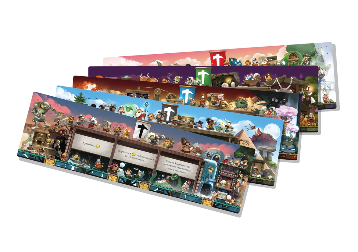 Удачная комбинация разнообразных эффектов карт позволяет выстроить собственную стратегию. Еще одной важной частью игры являются планшеты прогресса, продвижение по которым предоставляет специальные бонусы.
