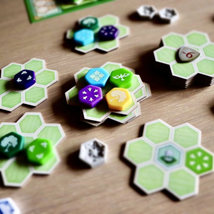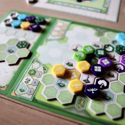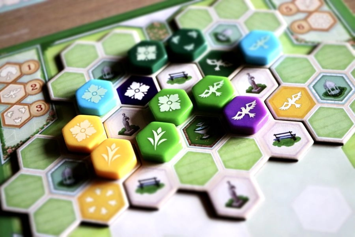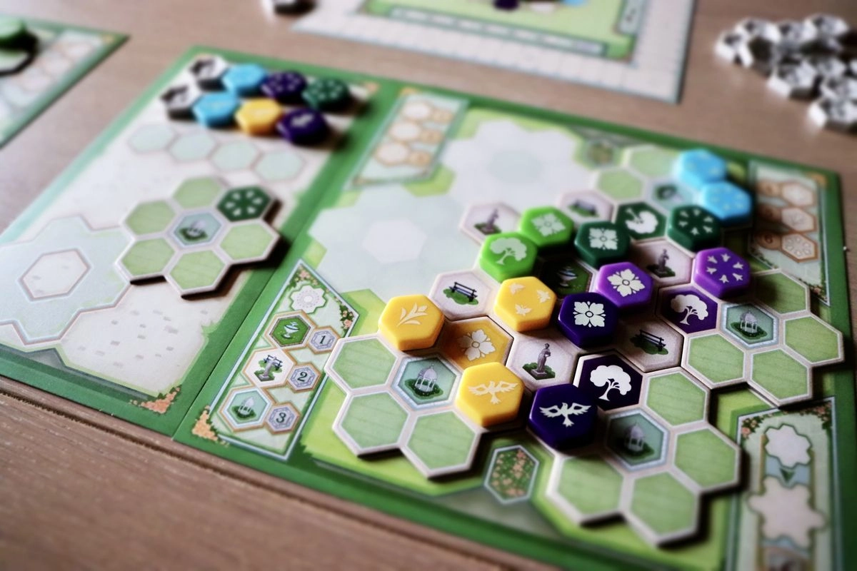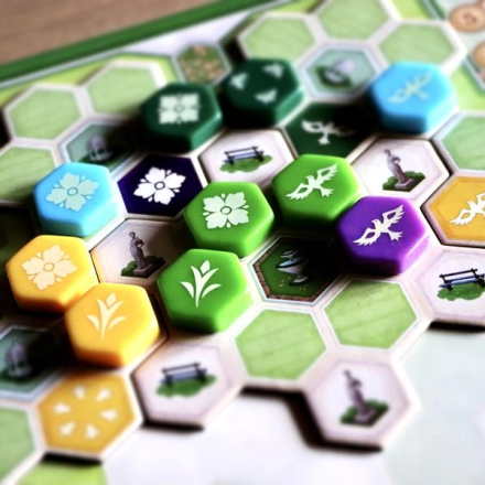 «Сад королевы» – это самостоятельная игра в мире Азул с механикой драфта. Цель игры – за четыре раунда создать необычайной красоты сад, комбинируя цвета и узоры, у каждого из которых есть своя ценность. Игроки будут строить аллеи сада из гексовых жетонов, а в конце каждого раунда будут подсчитывать баллы за выложенные на них плитки.