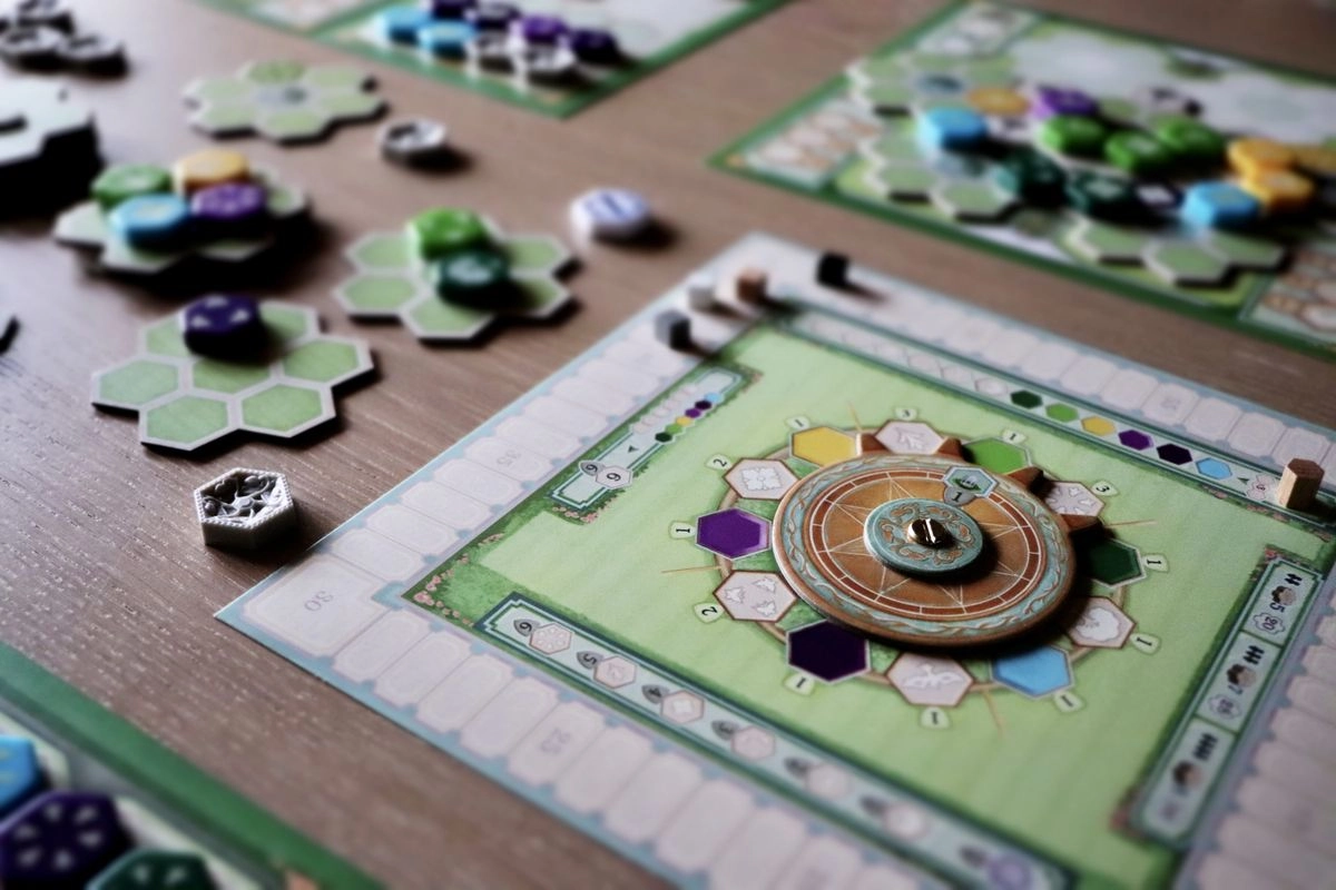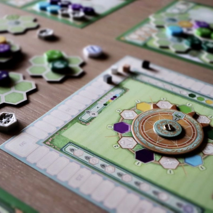 Раунд продолжается, пока все игроки не спасуют, после чего вращается диск и обновляются плитки рынка.