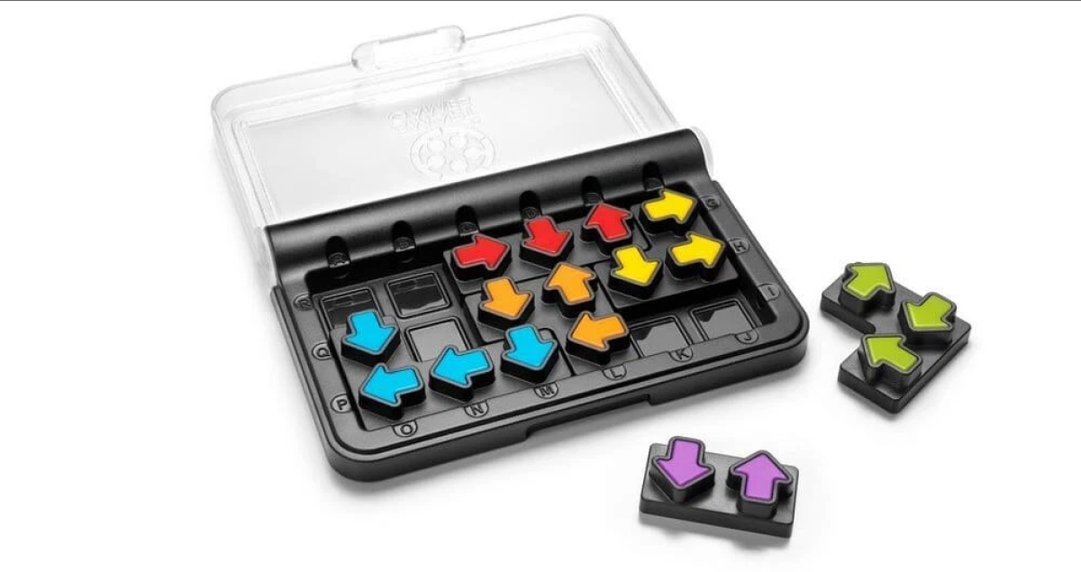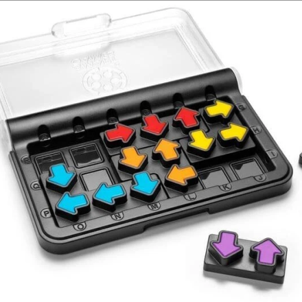 Настольная игра «IQ Стрелки» содержит 6 деталей с разноцветными стрелками. Выбрав задание, игрок пытается выставить стрелки в правильном направлении. Все детали должны быть размещены на поле, а стрелки - правильно сориентированы.