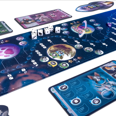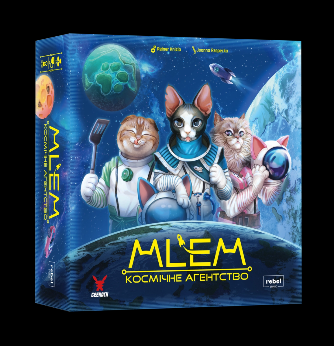 «MLEM. Космическое агентство» – это увлекательная и чрезвычайно милая семейная игра с бросанием кубиков и механикой проверки удачи (push-your-luck). Игроки в роли руководителей кошачьих центров аэронавтики и космических исследований будут отправлять своих пушистых подданных на ракету, руководить ею в путешествии по космосу, высаживать кошек на лунах и планетах, чтобы в конце игры получить как можно больше победных очков.