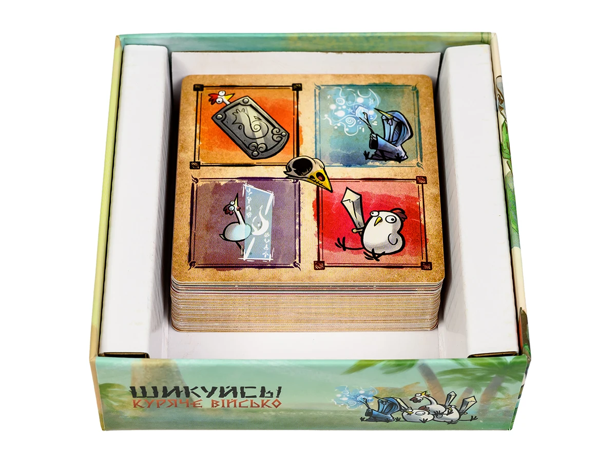 «Постройся! Куриное войско» — это веселая карточная игра, в которой вы будете собирать войско из куриц-бойцов и куриц-волшебниц!
