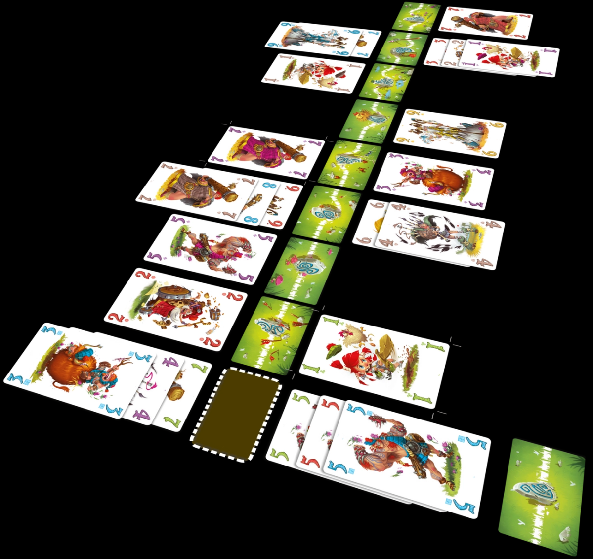 Противники ходят по очереди. В свой ход игрок выбирает карту с руки и выкладывает ее лицом вверх возле камня со своей стороны. С одной стороны камня может лежать максимум 3 карты.