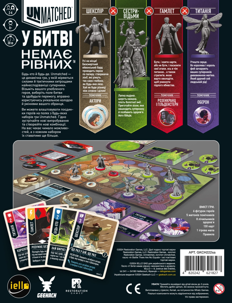 Базовые правила «Unmatched» неизменны. Чтобы победить, нужно обнулить жизнь героя соперника. Игроки ходят по очереди. В свой ход игрок выполняет два любых действия – маневр (взять карту на руку и переместить своих бойцов), уловку (разыграть карту уловки) и/или атаку (атаковать вражеского бойца, соперники выбирают карты атаки и обороны).
