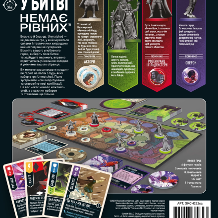 «Unmatched: Пращи и стрелы» – это новый выпуск «Unmatched» – популярной серии асимметричных дуэльных стратегий, в которой известные персонажи и персонажки из литературы, кино, попкультуры и мифологии встречаются на поле боя под вашим руководством. Этот выпуск является полноценной самостоятельной игрой, но, как и все игры серии, его можно совмещать с другими выпусками.