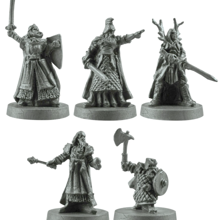 - Жетоны правителей. В игре есть 5 жетонов правителей, по одному для каждого суверена. Игрок за Свободные Народы может использовать этот жетон для изменения результата кубика правителя на тот, который активирует второе особое умение правителя, и немедленно использовать его для активации этого умения;
