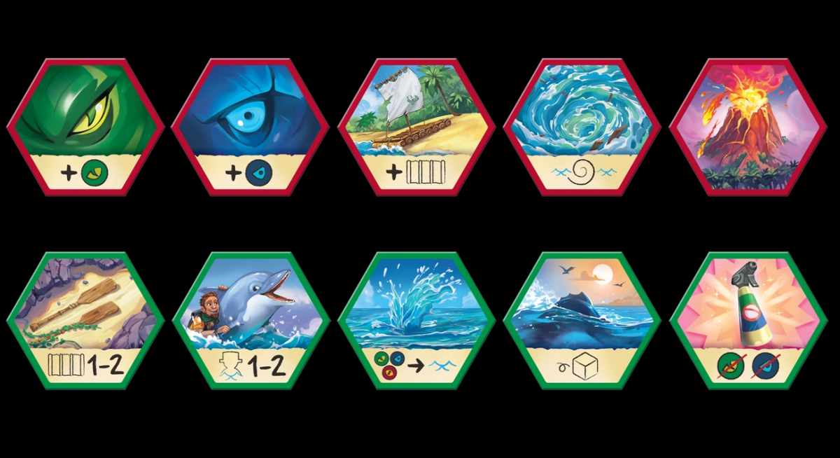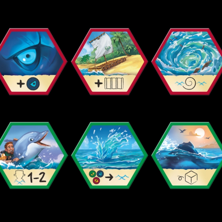 - Некоторые гексы острова при затоплении предписывают выполнить мгновенное или отсроченное действие. Это может быть размещение акул, китов, дельфинов или лодок, или даже вулкан или водоворот.