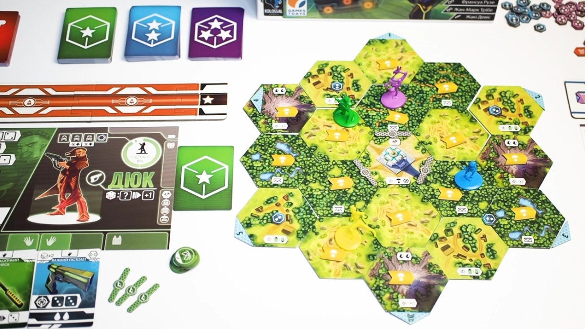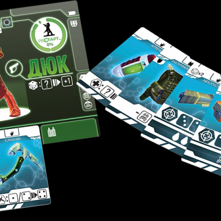 Итак, кибер-солдаты, имея в рюкзаках стартовое снаряжение, начинают высадку на острове. Особенностью игры является то, что игроки не бросают кубики, а назначают их нужной цифрой вверх. Выбранная грань будет впоследствии перемещена в зону атаки/защиты, что будет влиять не на результат боев.