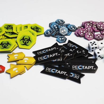 «Рестарт» — настольный шутер, вдохновленный механиками компьютерных игр. Гикачу уже известен прекрасный пример создания настолки по мотивам видеоигры «Northgard» с не менее ожесточенными битвами кланов.