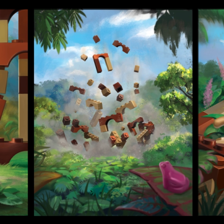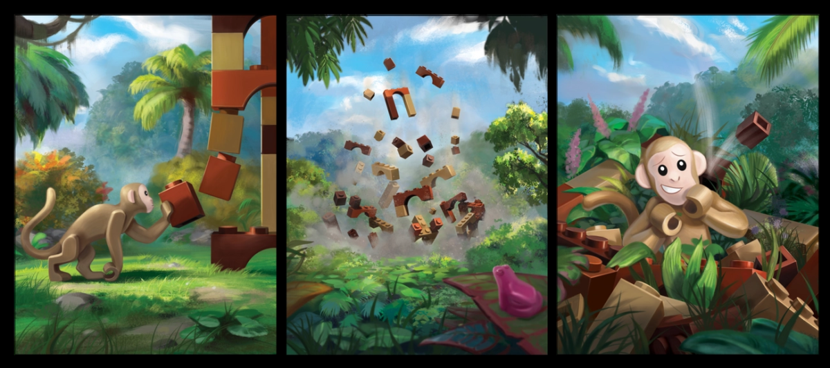 Каждый ход игроки получают от обезьян кирпичики, колонны и арки, из которых необходимо построить дворец.