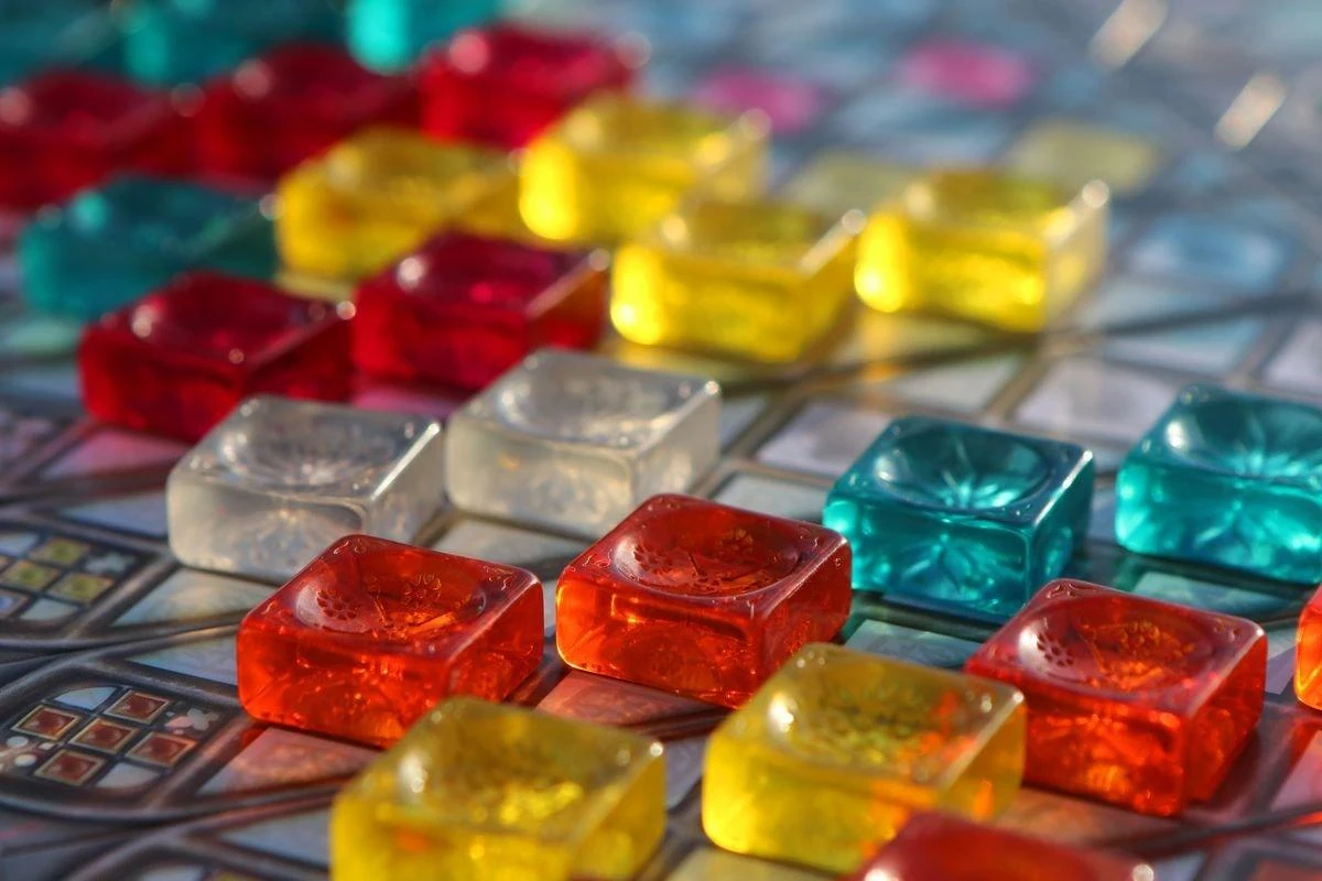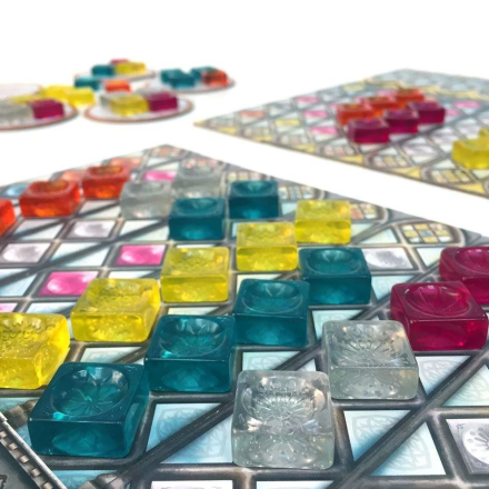 Выбранные стекла размещаются в одном из столбцов планшета - справа от фишки игрока. При этом фишка ставится над соответствующим столбцом. Если игрок заполняет стеклами весь столбец, он сбрасывает четыре стеклышка, а пятое размещает в ячейке дворцового окна, после чего получает победные очки.