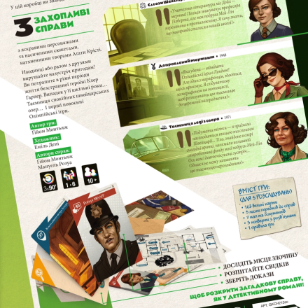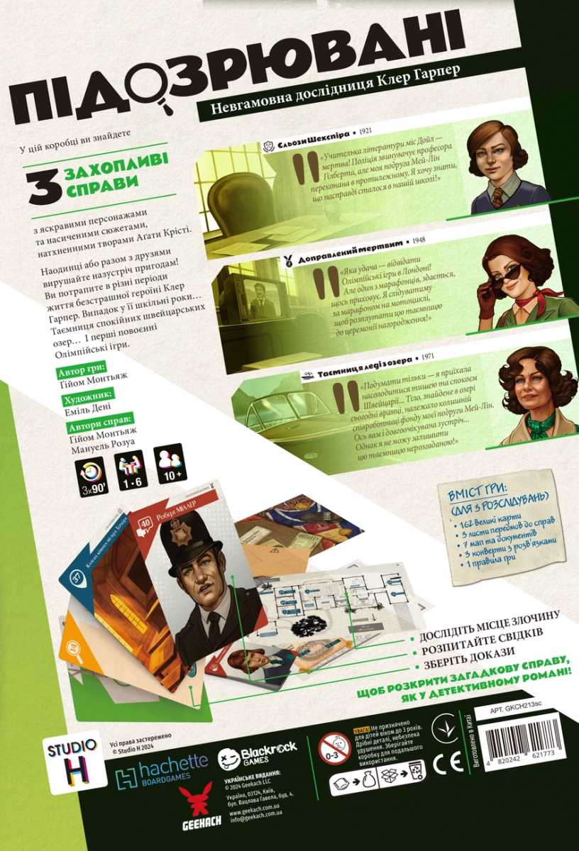 «Подозреваемые» – это детективная кооперативная (или же соло) игра, которая предлагает участникам расследовать загадочные дела с яркими персонажами и насыщенными сюжетами, вдохновленными классическими детективами Агаты Кристи. Вы будете играть за Клэр Харпер – молодую детективку, которая раскрывает запутанные преступления в разных уголках мира.