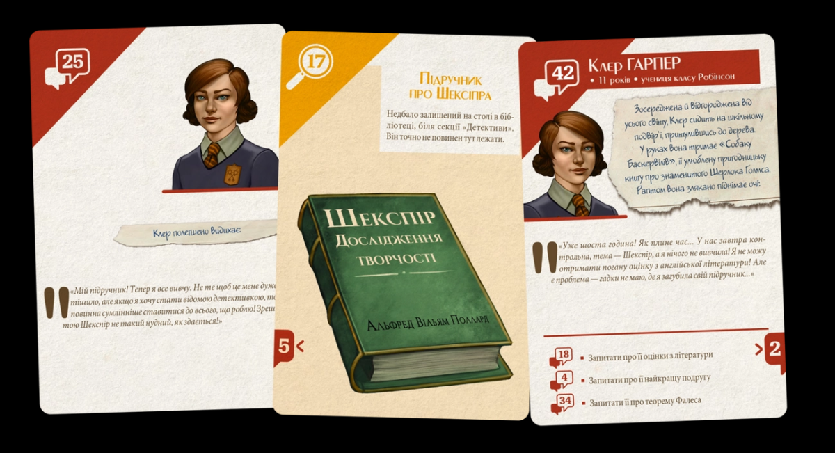 В течение игры вы будете читать карты доказательств, обсуждать полученную информацию, делать предположения и определенные выводы. Ваша цель – получить как можно больше очков, правильно ответив на вопросы.