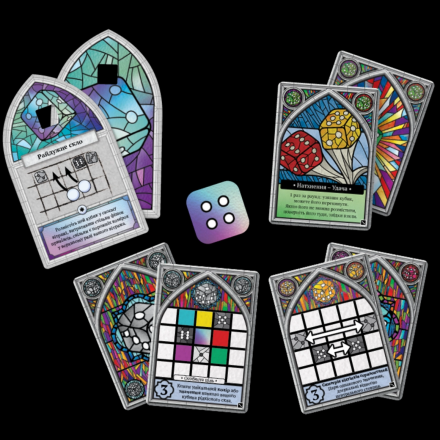 Содержит кубики редкого стекла, которые можно размещать рядом с кубиками любого цвета (но с другими значениями). В начале игры случайно выбирают один из планшетов редкого стекла. Кубики редкого стекла бросают и размещают выпавшими гранями в ячейках планшета. Вместо 3 карт инструментов используют 2 карты.