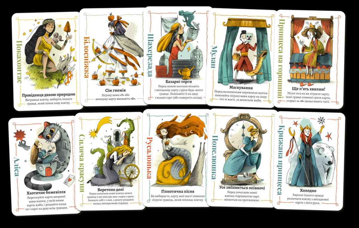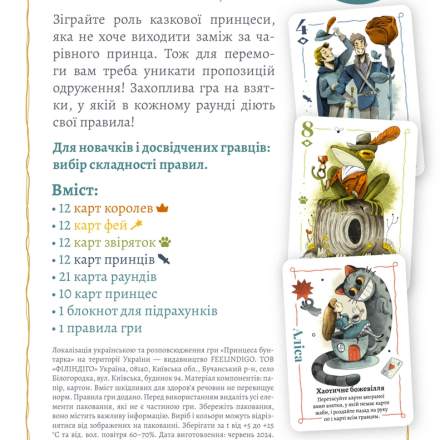 «Принцесса бунтарка» — карточная игра на взятки, в которой вы в роли принцессы отдыхаете на вечеринке с подругами, куда не приглашены бесцеремонные принцы. Увлекательный сюжетный бэкграунд со знакомыми персонажами сказок в стильном дизайне обязательно привлечет внимание ценителей осовремененных историй детства. Атмосфера яркой вечеринки и динамичный игровой процесс не оставят вас равнодушными.
