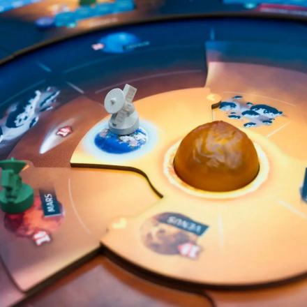 - Выйти на орбиту планеты. Превратите зонд в орбитальный аппарат, переместив фигурку с планеты на ее орбиту на поле планет.