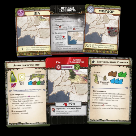 - Братство. Если ваш персонаж находится в одной локации с персонажем другого игрока, вы можете передать ему или взять у него карту, соответствующую вашему региону.