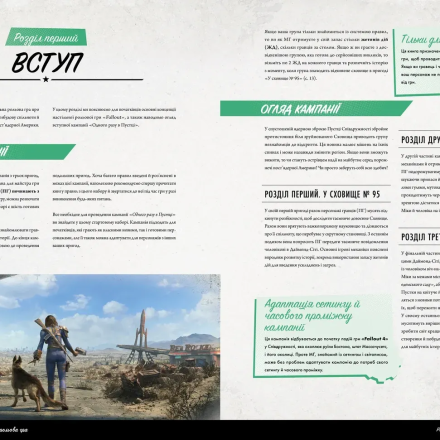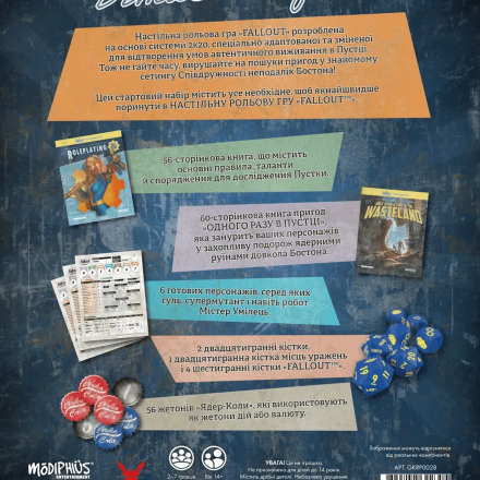 - книга приключений, содержащая вступительную кампанию из трех приключений «Однажды в Пустоши» для начинающих игроков, которая погрузит их в путешествие ядерными руинами