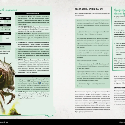 - книга с основными правилами, которая доступно познакомит вас с принципами игры, такими как характеристики, умения и специализации, проверки, жетоны действий и бой, а также таланты и снаряжение;