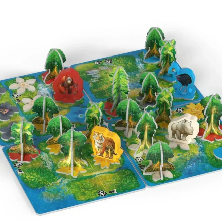 И вычитаются баллы за незавершенные или разноцветные. Побеждает тот, кому лучше всего удалась сбалансированная и продуманная экосистема тропического леса.