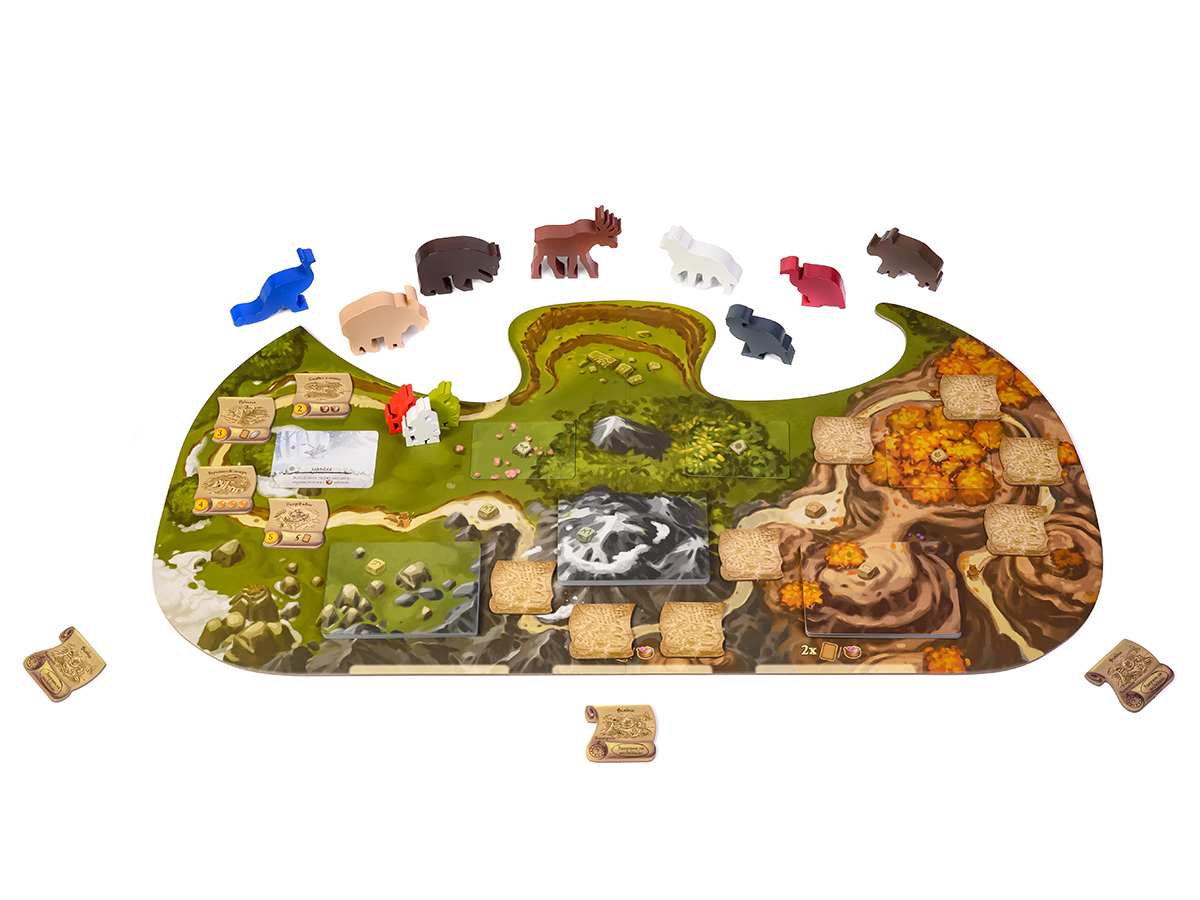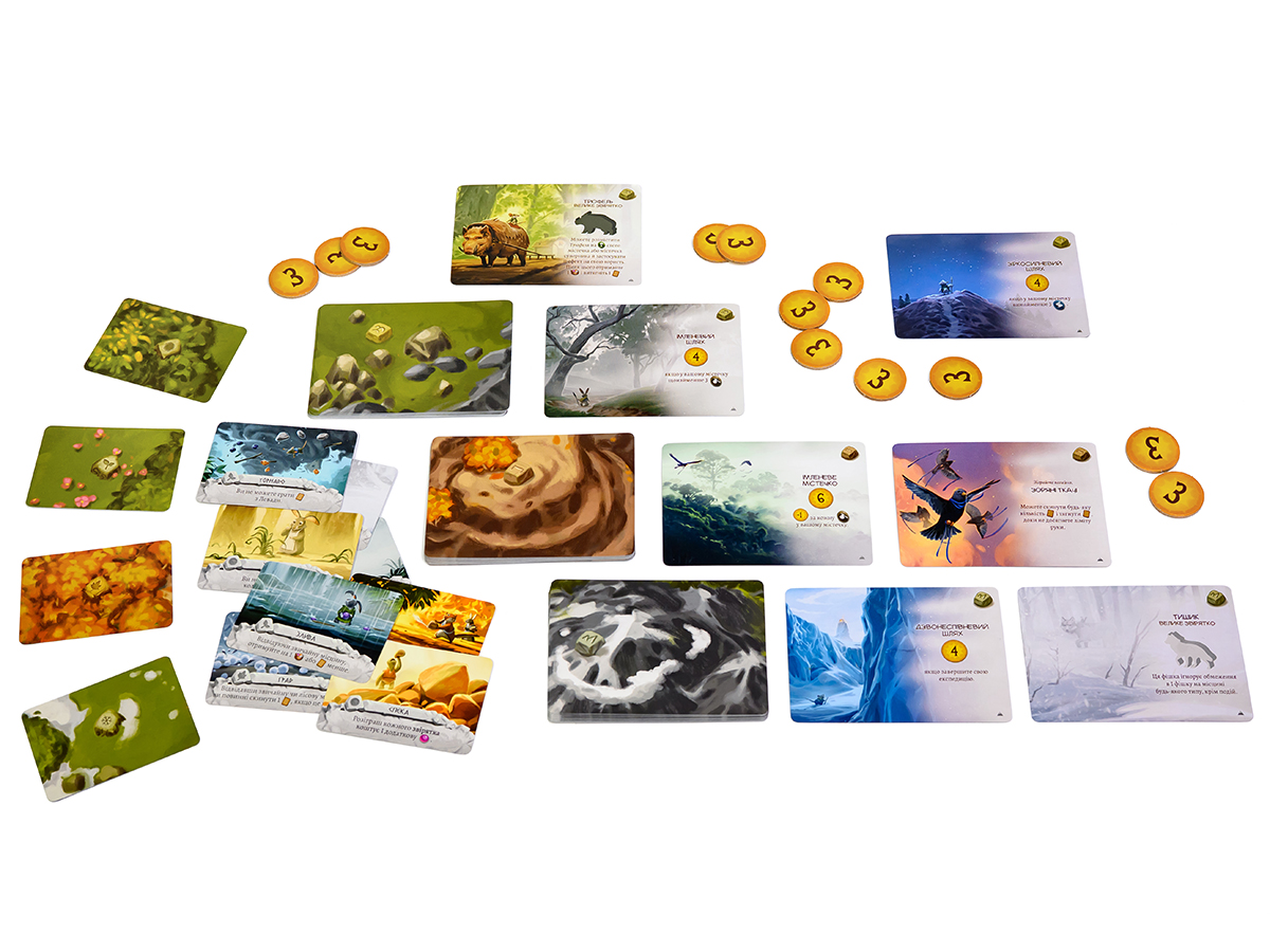 Во время своих Путешествий путешественники будут иметь возможность встретить действительно величественных существ и подружиться с ними. В этом случае могущественные союзники отправятся прямо в Эверделл, чтобы предоставить там свою помощь игрокам. Каждый такой великан обладает уникальными способностями, которые делают его чрезвычайно полезным помощником. Например: Король Рун будет приносить игроку дополнительные ресурсы, Тишик будет игнорировать ограничение местностей в 1 фишку, а Мидолап будет дарить немного ягод.Также дополнение Everdell: Spirecrest добавляет в игру новый вариант соло-режима. На этот раз Король-крыса, уже хорошо знакомый игрокам по базовой игре, решил помешать исследовать мир вокруг Эверделла и найти себе новых союзников. Он договорился с неким Великим Созданием, чьей целью теперь будет преследование и дальнейшее обворовывание бедных Кроликов-путешественников, у которых и без этого всяких проблем хватает.