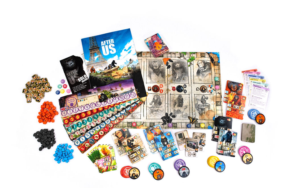 Настольная игра После нас — это карточная головоломка, которая завораживает как одного игрока, так и целую компанию из шести руководителей племен обезьян. Стилизация от Венсана Дютре не оставит ни вас, ни ваших друзей равнодушными и перенесет в реалии нового мира. Выполняя важную миссию становления следующей цивилизации, вы с упоением проведете не один вечер. Сделайте шаг в старый новый мир, чтобы застать времена «после нас»!
