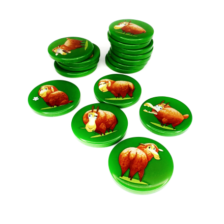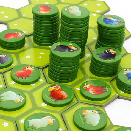 Каждый игрок получает 16 жетонов овец своего цвета и 4 пастбища, разделенных на шестиугольные зоны.